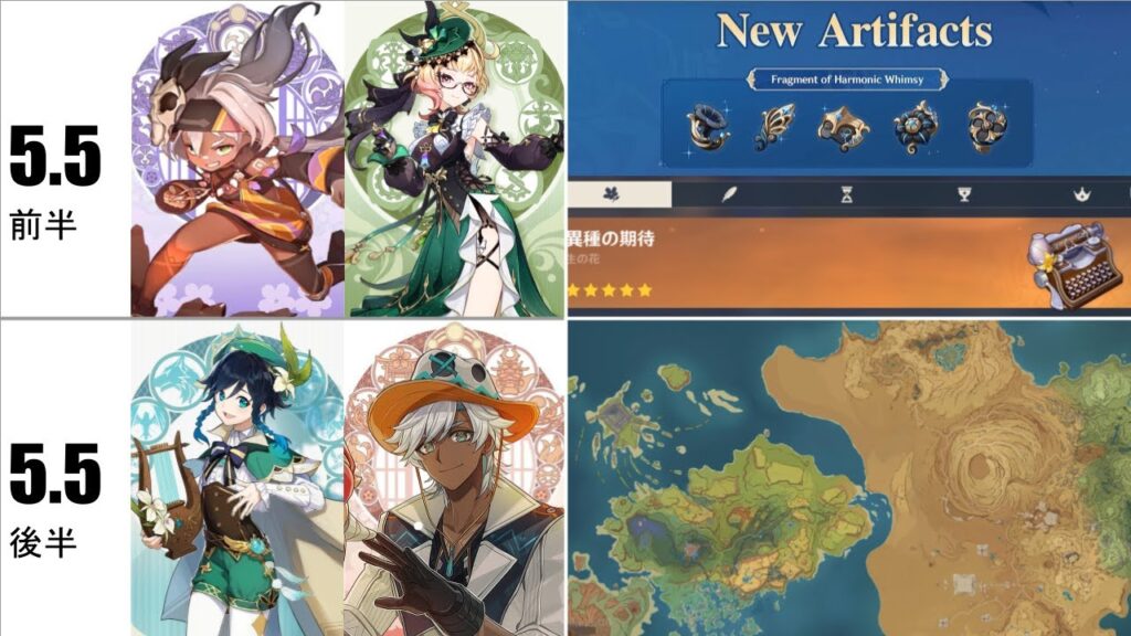 そこで今回は、5.5のバナー、新キャラクター、復刻、マップ拡張、新聖遺物