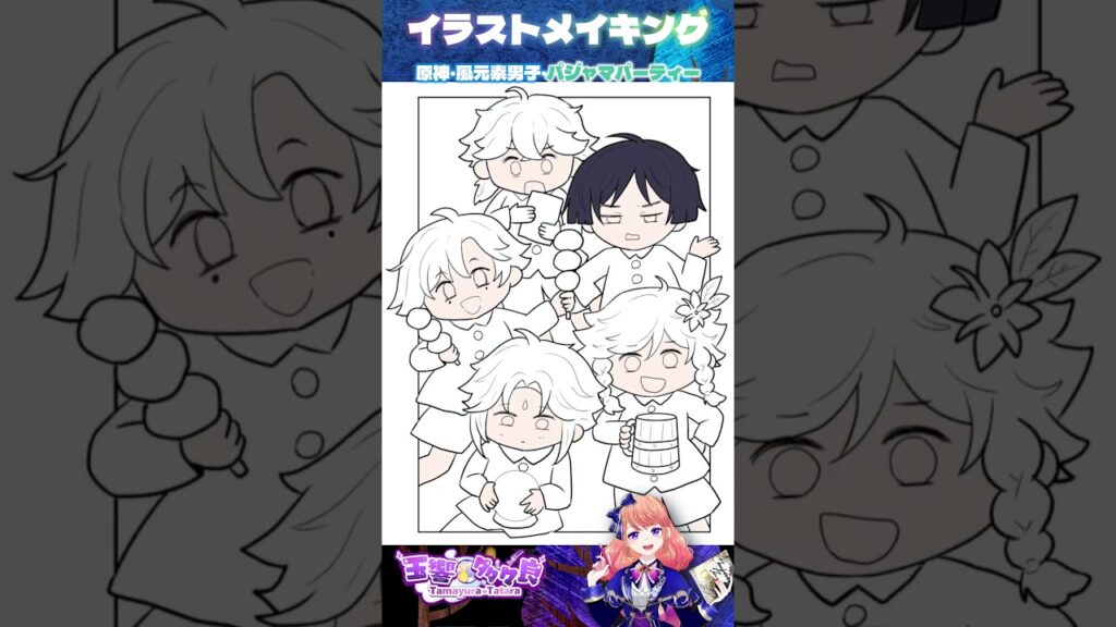 原神・風元素男子のパジャマパーティー☆描いた