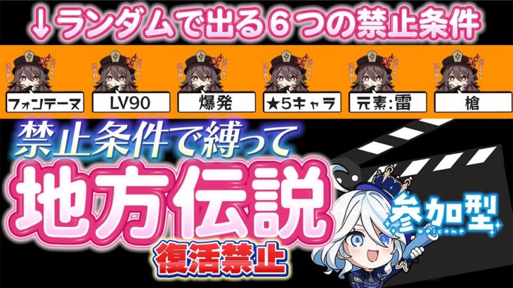 ※キャラ選択待ち時間に岩主人公やヌヴィレットや弓で狙う等の過度の攻撃は配信映えしないし滑っている為やめてください。