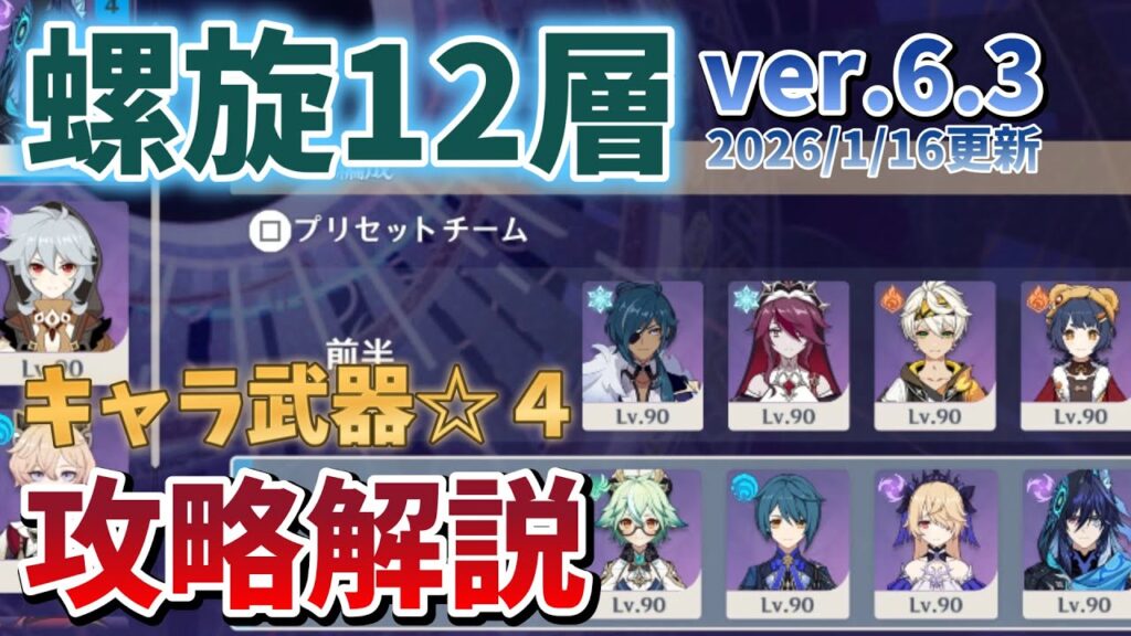 キャラ武器☆4の螺旋12層攻略動画です。
