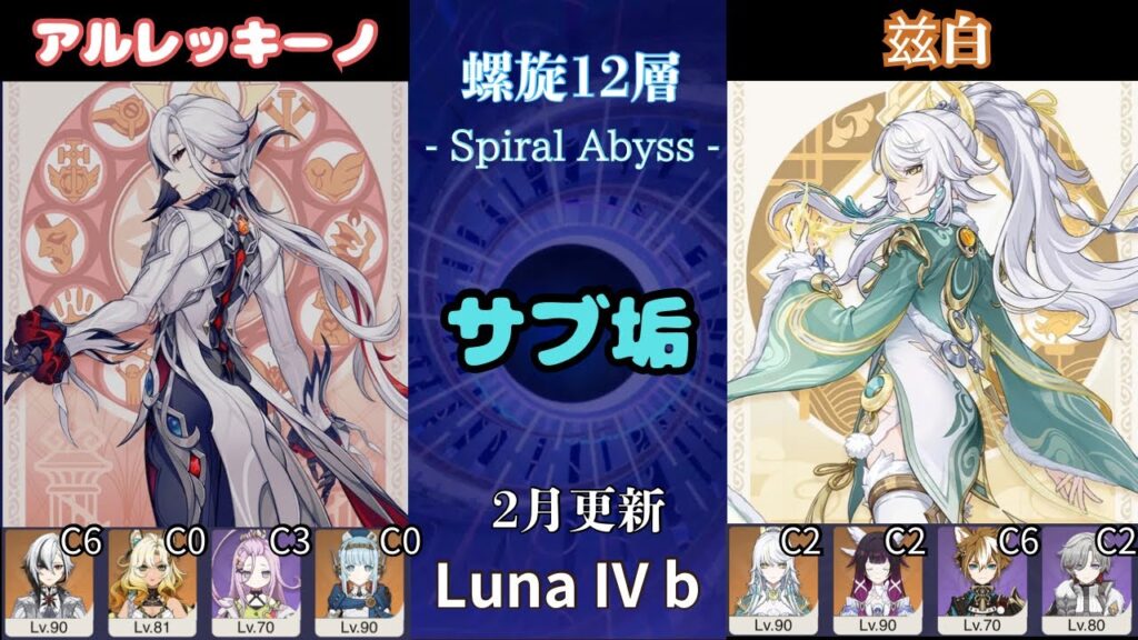 【原神】 Luna IV b サブ垢の螺旋12層星9攻略 part15 アルレッキーノ(月感電) 兹白 (2026/2/16更新)