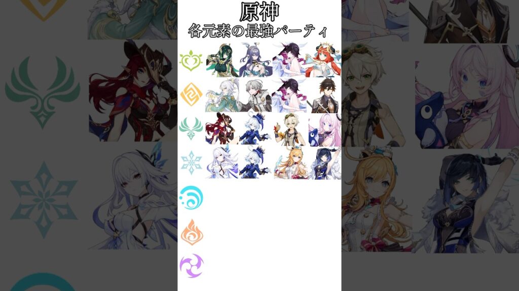 【#原神 】各元素の最強アタッカーとそのパーティ#genshinimpact #genshin #shorts #short