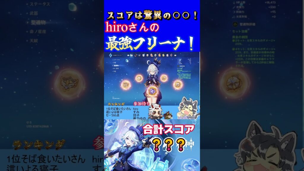 3月19日の聖遺物鑑賞大会で堂々の1位となったhiroさんのフリーナを紹介します!