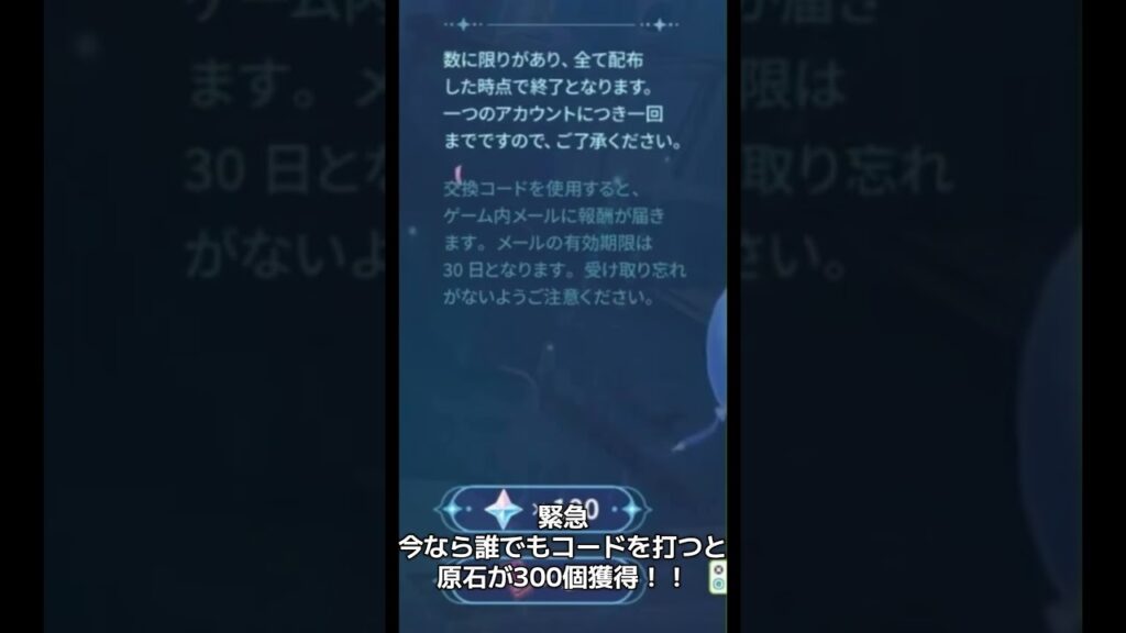 【原神】今なら誰でもコードを入力すると原石が300個獲得可能!!! #原神 #genshinimpact #shorts