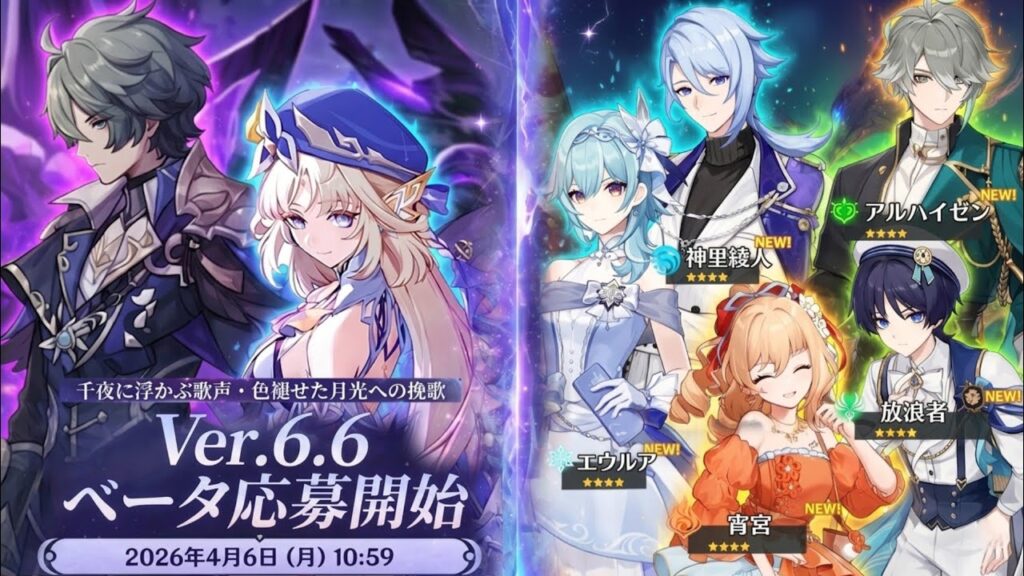 原神, 原神リーク, 原神6.6, 原神ベータ, 原神アップデート, 原神スキン, 原神周年, 原神キャラクター, 原神最新情報, 原神ガチャ, 原神攻略, 原神ニュース, 原神噂, 原神Discord, 原神ベータ応募