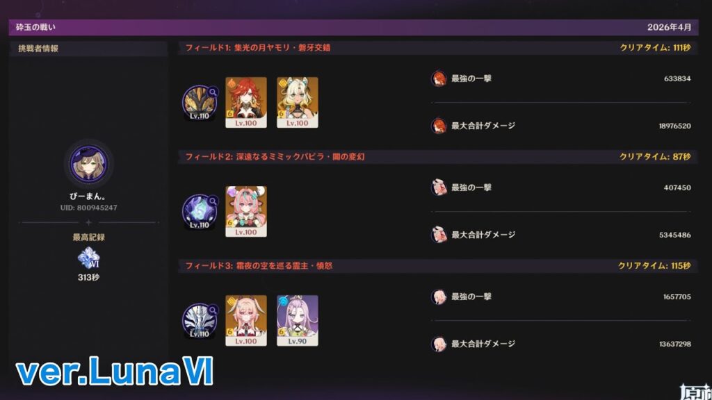 【原神】ver.LUNA Ⅵ 幽境の激戦 アルティメット 5キャラ クリア / Stygian Onslaught Dire(Lv.6) 5 character gamemen 7日前 アルティメット5キャラクリア 今期もヴァレサ単騎連勝記録更新!!! SNS #原神 #genshinimpact #幽境の激戦 #Stygianonslaught #hoyocreators