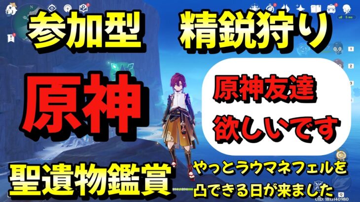 私のUID:1813140980 こんにちわ、鈴木です。よろしくお願いします。 基本的に昼の14時30分から原神配信してます。 精鋭狩りに参加したい方は「精鋭狩り参加希望」など一言コメントくれると嬉しいです。精鋭狩りはどのキャラを使ってもオッケーです。 聖遺物鑑賞は常に受け付けております。精鋭狩りの途中でも大丈夫です。精鋭狩りのキリのいい所で鑑賞させて頂きます。 鑑賞希望の方は、フレンド申請をして […]