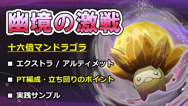 幽境の激戦の十六倍マンドラゴラ エクストラ/アルティメットの攻略動画です。 PT編成や立ち回りのポイントを重点的に話します。 幽境の激戦自体への取り組み方については 過去の動画のリンクをこの概要欄下部に記載しています。 また、動画で触れていた各キャラの元素付着も下部にリンクを記載しています。 ボス1体との戦闘コンテンツで複数戦重視を実装したらこうなりました、という感じ。 とは言え結局は本体火力も必 […]